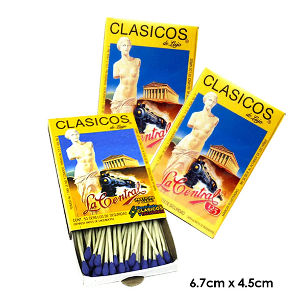 Los cerillos Clásicos La Central 5 cajas con 50 pzas c/u, son el elemento perfecto para encender tu estufa, boiler, o carne asada. Su tamaño compacto te permite llevarlos incluso en la bolsa de tu pantalón, cuenta con dos bandas de lija al costado de la caja para que el cerillo encienda a la primera. Es un producto amigable con el medio ambiente, cumple con la NOM 118-SCFI.